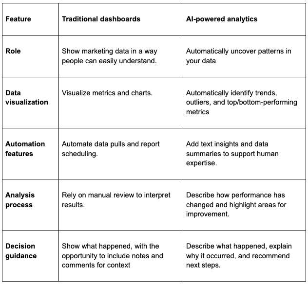A adição de análises de IA ao seu painel de controlo não substitui o fluxo de trabalho de relatórios que já utiliza. Dá-lhe um ajudante que pode rever os números e apontar qualquer coisa relevante para os relatórios de campanha do seu cliente.
