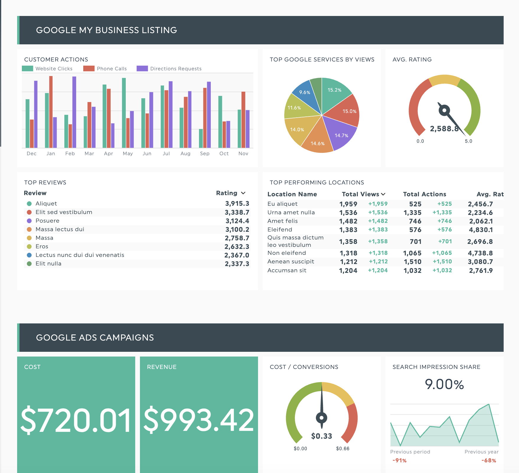 Este modelo conecta métricas online a resultados reais, acompanhando as visualizações do Perfil do Google Business, classificações de pesquisa local e pedidos de direções, juntamente com o desempenho da sua campanha digital. Ideal para agências que gerem negócios locais e precisam comprovar e otimizar o ROI tanto do marketing digital quanto da visibilidade na pesquisa local.