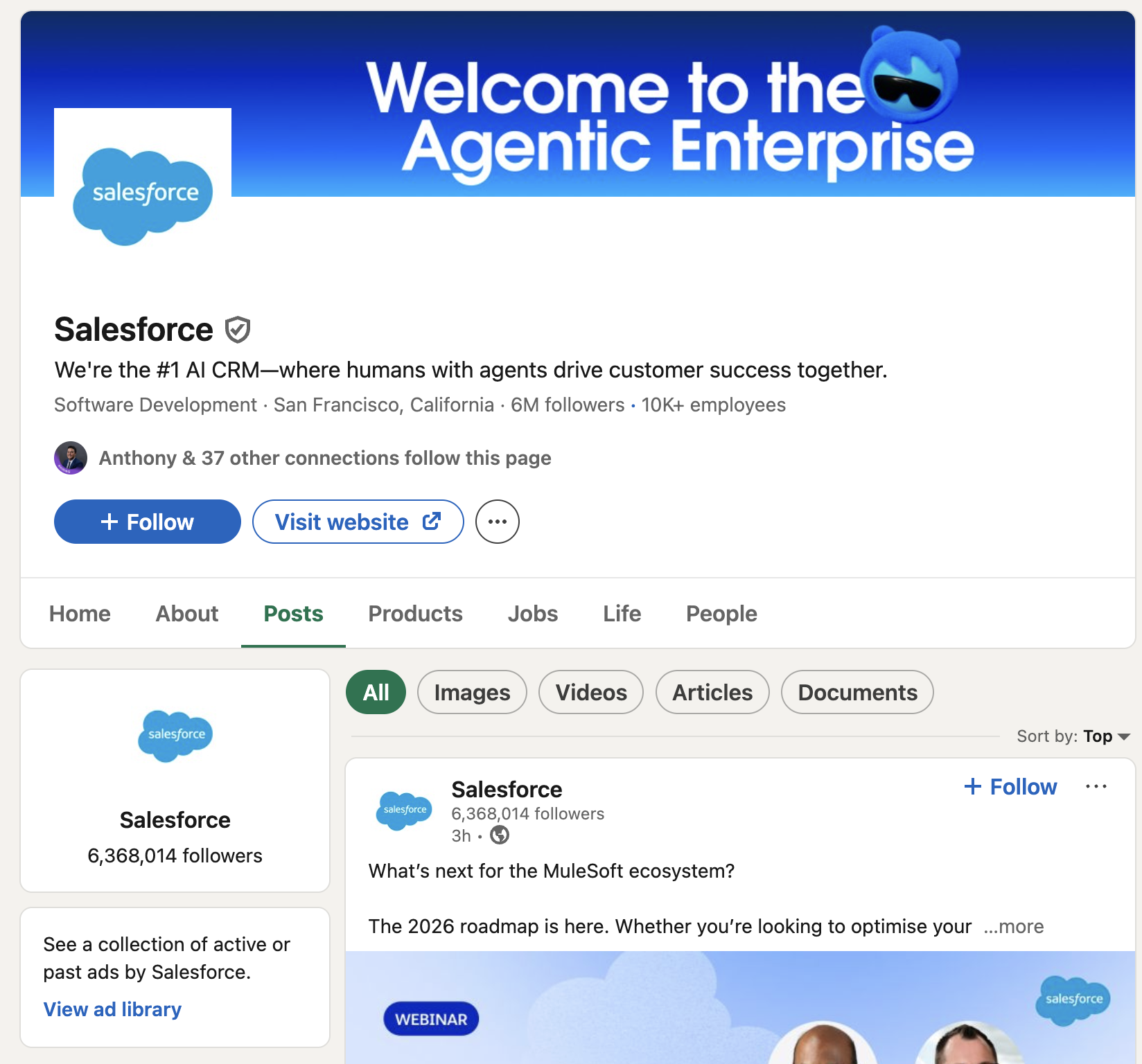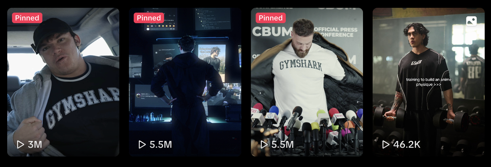 Este contraste mostra que cada marca se concentra nas plataformas onde o seu público está mais ativo. A Salesforce investe mais no LinkedIn, onde os decisores B2B passam o seu tempo, enquanto a Gymshark se concentra no TikTok, onde o conteúdo de fitness prospera e os consumidores mais jovens interagem de forma mais natural.