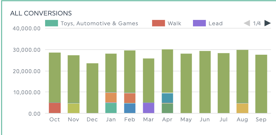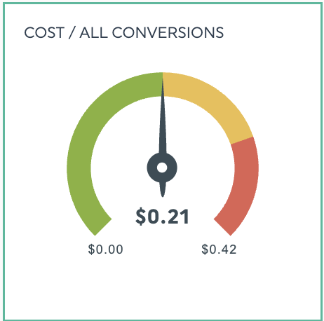 Para tipos de variáveis centradas em objectivos que exigem uma monitorização rigorosa, os widgets de medição ajudam a acompanhar o seu progresso. Funcionam bem para mostrar o quão perto está de atingir os objectivos principais, quer esteja a acompanhar o custo por conversão ou os objectivos de receita. Estes widgets também ajudam a fornecer um contexto visual codificado por cores - saberá imediatamente se está ou não a cumprir os seus objectivos.