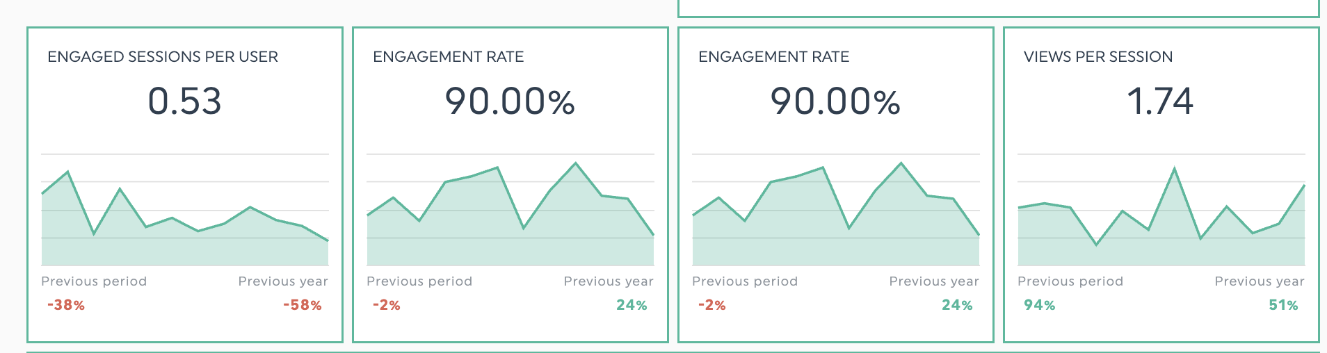 As métricas do GA4 rastreiam eventos individuais e o comportamento contínuo do visitante. A análise de números específicos, como sessões e conversões, juntamente com métricas como taxas de rejeição e de envolvimento, dá-lhe uma imagem clara do desempenho do seu Web site.