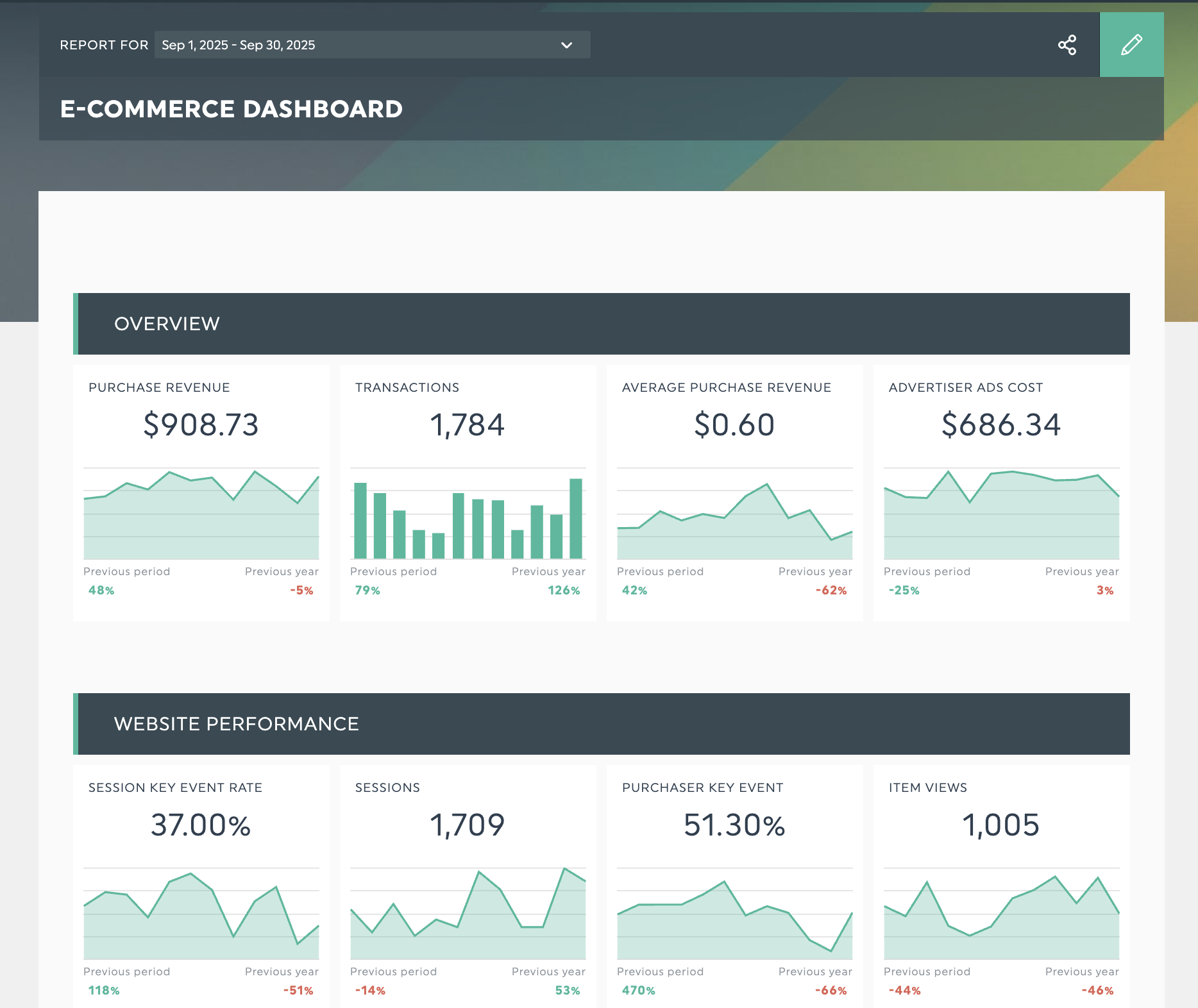 Obter este painel de controlo do comércio eletrónico com os seus próprios dados!