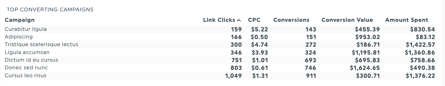 Estas métricas de objectivos variam em função dos objectivos da sua campanha, por isso mantenha o seu relatório centrado nas métricas que afectam diretamente os objectivos da campanha do seu cliente.