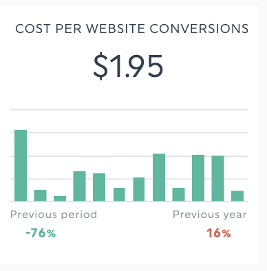 Outra métrica utilizada para calcular os gastos com anúncios do Facebook é o custo por conversão, que calcula quanto gasta quando as pessoas realizam uma ação desejada, como enviar um formulário, comprar um produto ou descarregar uma oferta de conteúdo. Acompanhe esta métrica para garantir que as suas campanhas pagas no Facebook continuam a ser rentáveis.