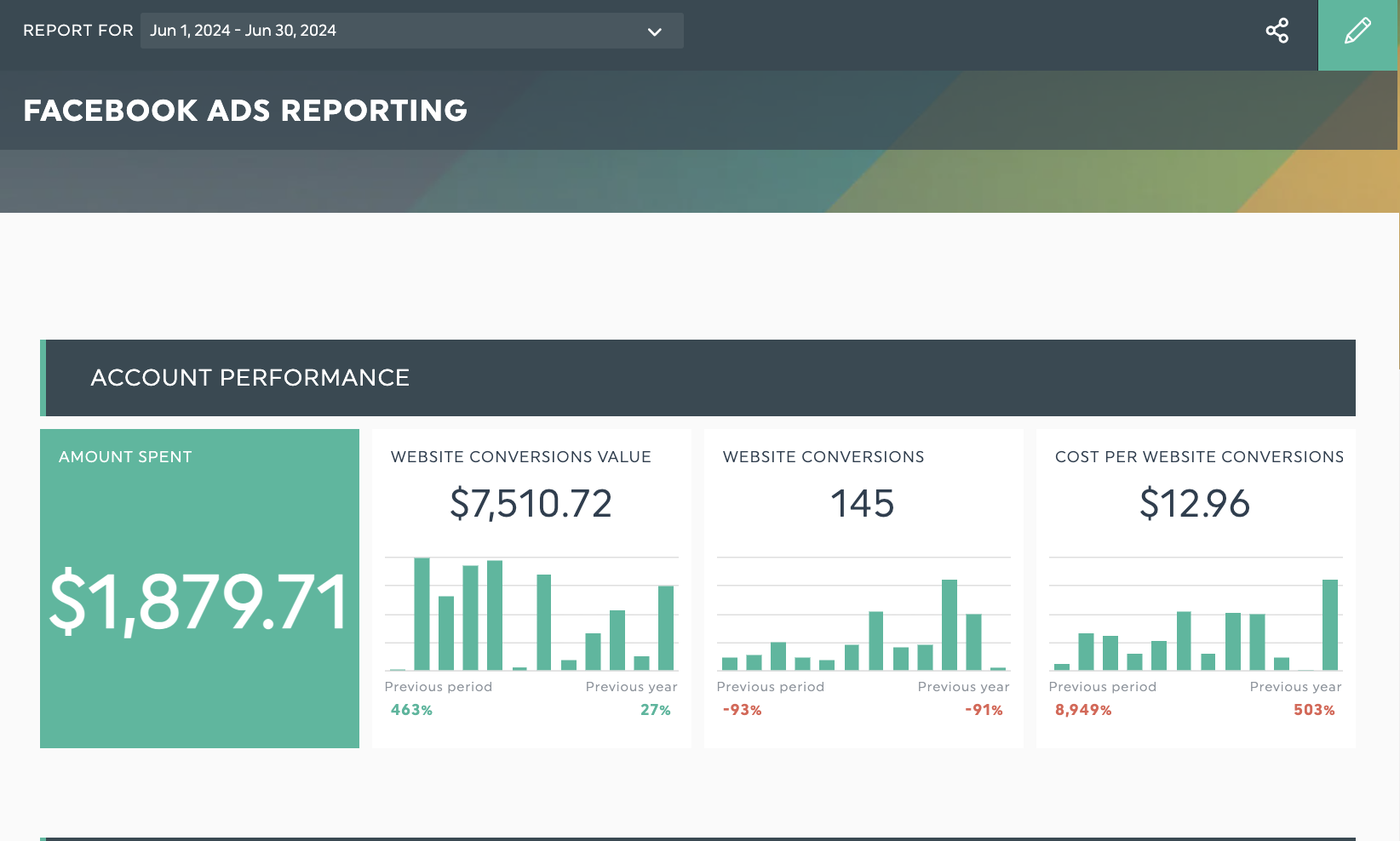 No entanto, se estiver a elaborar relatórios sobre mais canais de marketing para além dos relatórios de anúncios do Facebook, se precisar de poupar tempo na elaboração de relatórios para vários clientes ou se apenas pretender relatórios com melhor aspeto, vale a pena investir numa solução de elaboração de relatórios automatizada.