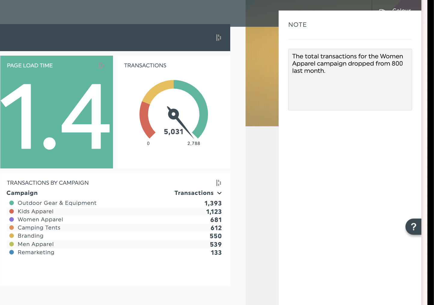 Digamos que notou uma queda no total de transacções de uma campanha específica do Facebook este mês. Pode adicionar uma nota com uma explicação pormenorizada no seu relatório ao widget para ajudar a tranquilizar o seu cliente e enumerar as medidas que está a tomar para melhorar os números das vendas no próximo mês.