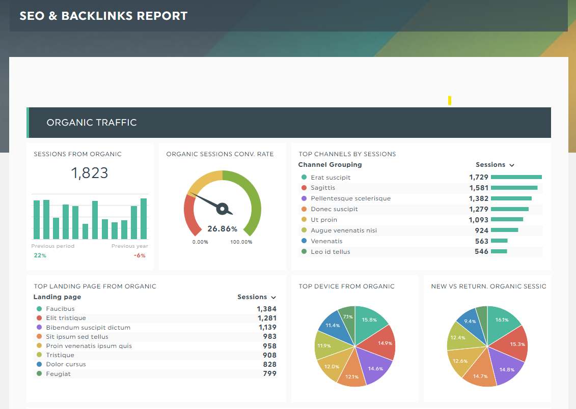 Obtenha todos os dados de todo o seu conjunto de marketing digital organizados e apresentados de forma clara num único relatório. Este relatório de marketing digital foi criado para simplificar a vida de um profissional de marketing digital ocupado, ajudando-o a reunir todos os dados de várias ferramentas num único local.